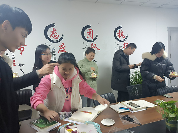 對(duì)待每個(gè)員工都像家人一樣,沒(méi)有公司存在的勾心斗角,大家都互相幫忙,下面附上銷售部同事舉行的生日宴會(huì)照片,